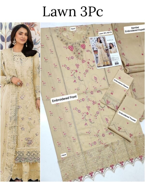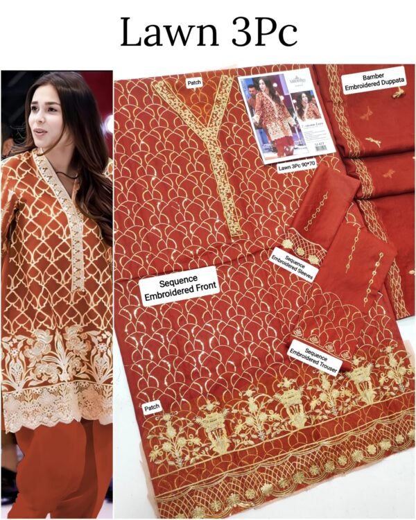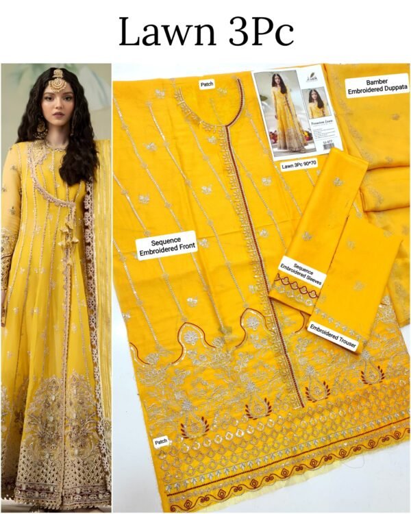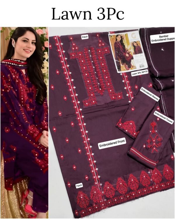 Lawn Fancy 3pc with Embroidered Chiffon Dupatta