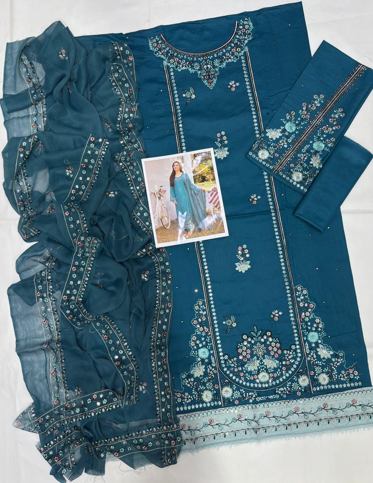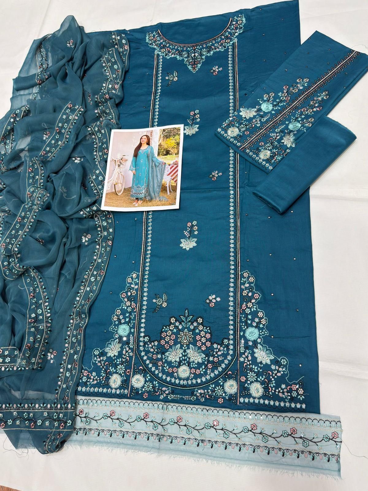 ✔️ Bamber Chiffon Emb dupata with Embroidered lace