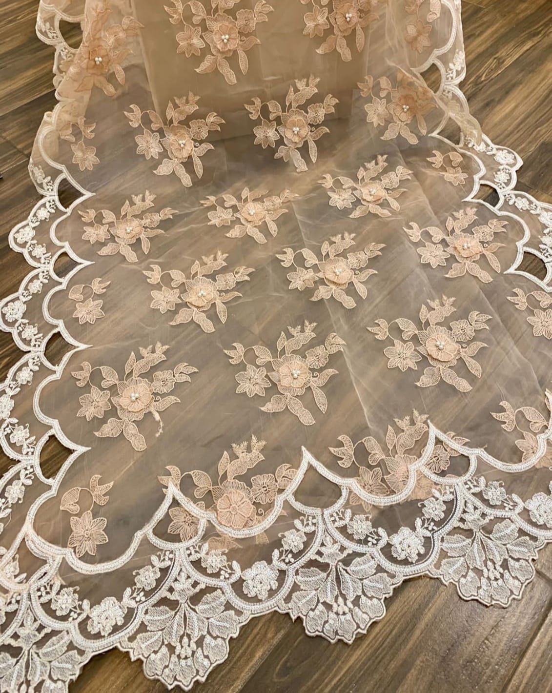 Dupatta organza fully heavy embroidered spengle work dupta with fully heavy 3d flower attach with cut work with 2 side heavy embroidered spengle work pallou boarder attach