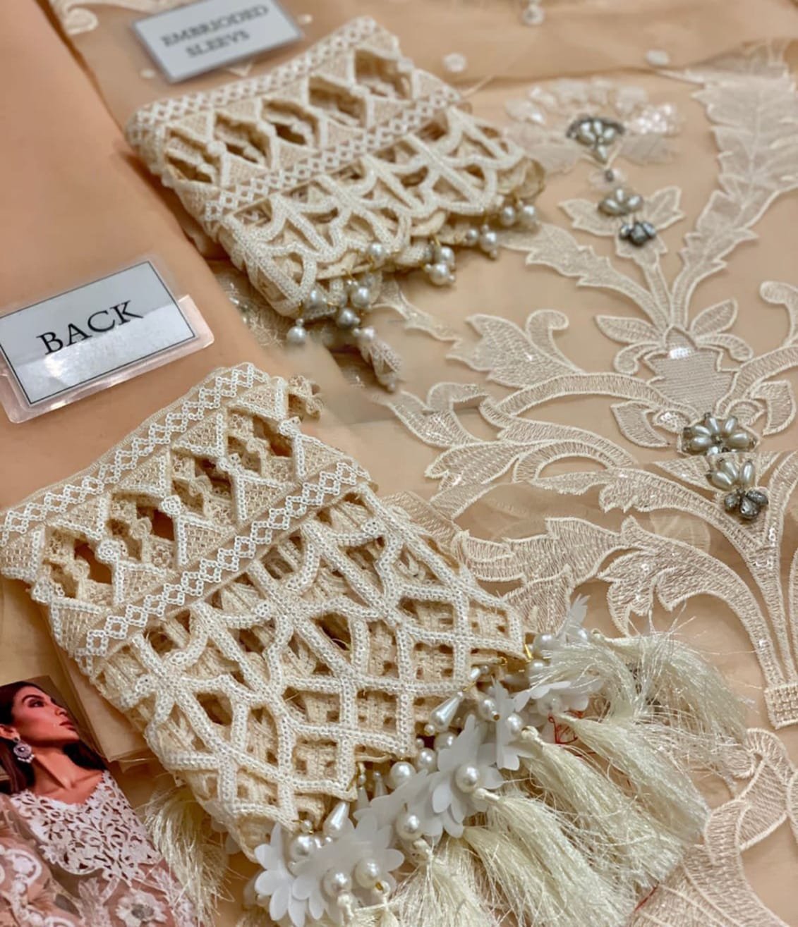 Back organza plain back with heavy embroidered spengle work back daman boarder with fully cut work