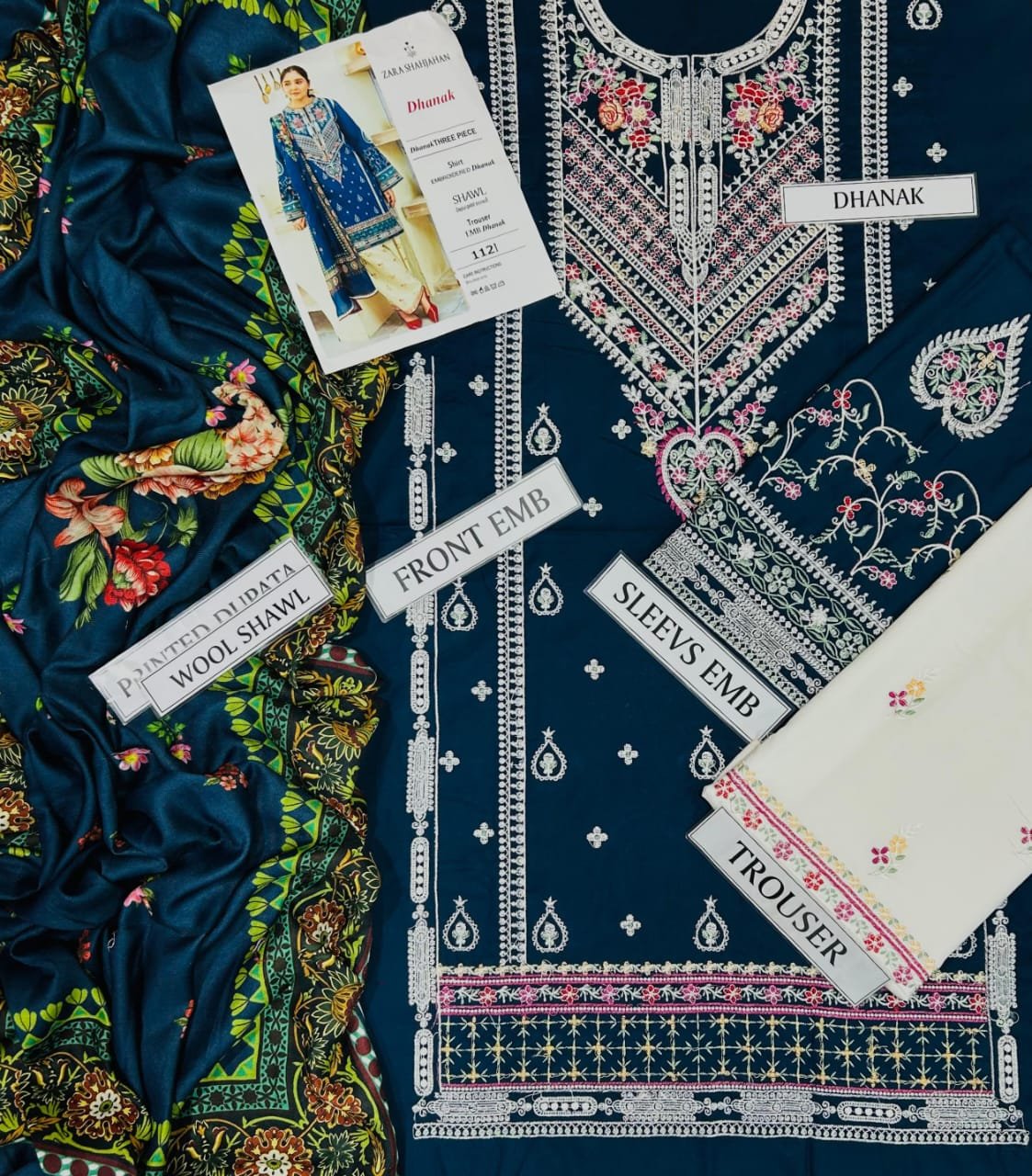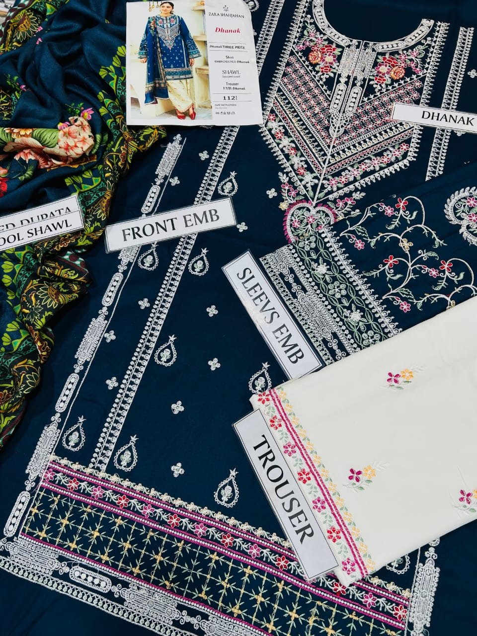 ZARA SHAHJAHAN Dhanak Embroidered 3pc with Pashmina Shawl
